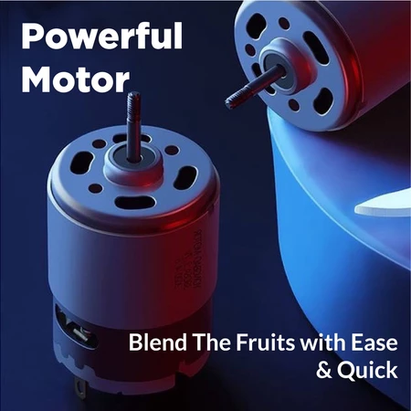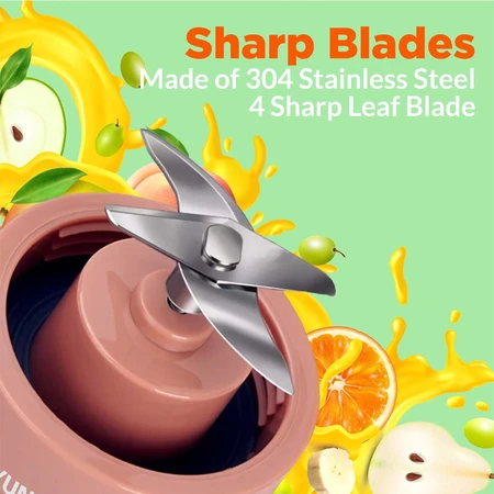 4-blades concealed design for safe use. And with the strong spinning and 1400mah supercharged power battery, the juicer mixer can blend fruits 15 times after one-time fully charged
