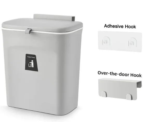 - 【SIZE & CAPACITY】 Dimension: 23.7cm x 13cm x 29.5cm; Capacity: 2.4 Gal. Please make sure that your cabinet door thickness is not over 2.5cm if you would like to hang the trash bin on your cabinet door.