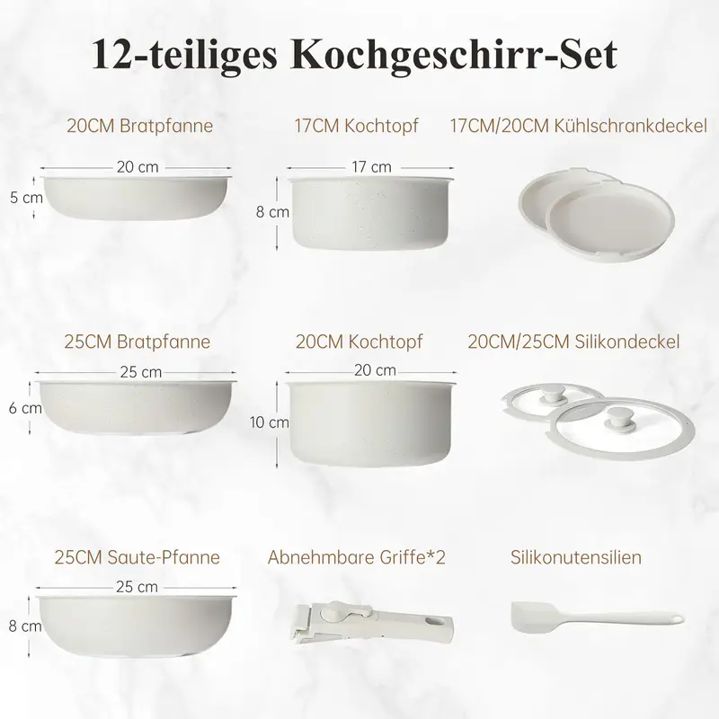 12-Piece Detachable Handle Pot & Pan Set, 7-inch/8-inch Cookware, Camping Cookware for RVs
